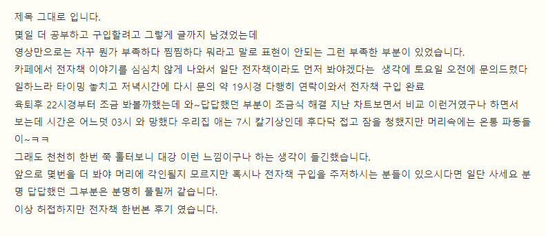 앞으로 몇번을 더 봐야 머리에 각인될지 모르지만 혹시나 전자책 구입을 주저하시는 분들이 있으시다면 일단 사세요.